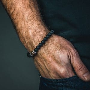 The Gentis bracelet is built around a centerpiece that features a bead crafted from 100 million year-old dinosaur bone found in the American West. Every bead, by the very nature of the extraordinary material, is unique in pattern and color. Flanked by sterling silver and frosted black onyx and with a comfortable and secure sterling clasp system. Whether you are in denim or business attire, the ‘Gentis’ bracelet wears beautifully and adds your own distinct style. Great on its own or layered with another piece. #340190