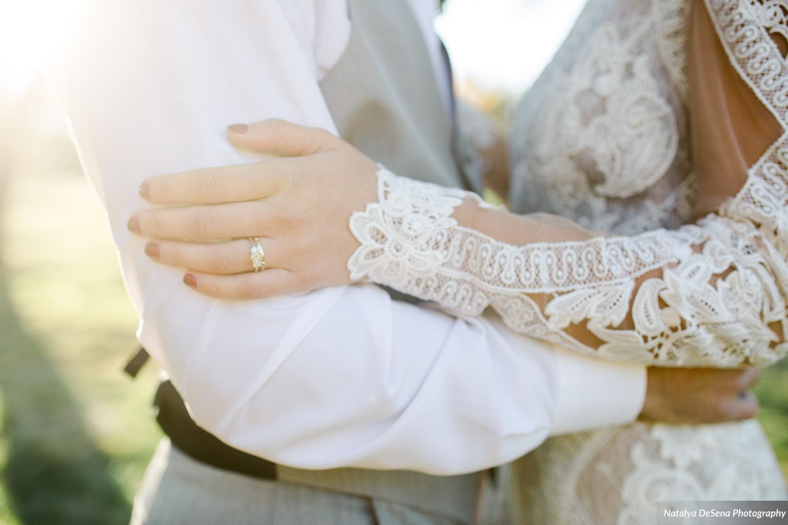 Perhaps this bride has dreamed of her wedding since she was a little girl. We see sweeping fabrics, candles, lace, neutral tones and soft flowers. She is the type who will love any ring you give her, no matter what, because that is what it all about. Trust and love and romance.