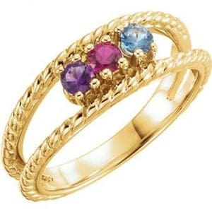When we speak of birthstones, many of us recall the traditional Mother’s Ring. A ring – usually simple – made to hold birthstones on a band, or between two bands, of white or yellow gold. One gem, usually a birthstone, is set to represent each child. Alas, many birthstones are far from durable. And although sweetly sentimental, some color combinations are, let’s just say, far more sweet than lovely.