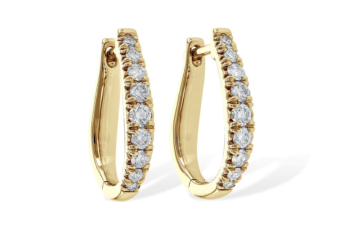 The diamonds on these diamond huggie hoop earrings are graduated to add dramatic detail to the pair. Other specifics include: