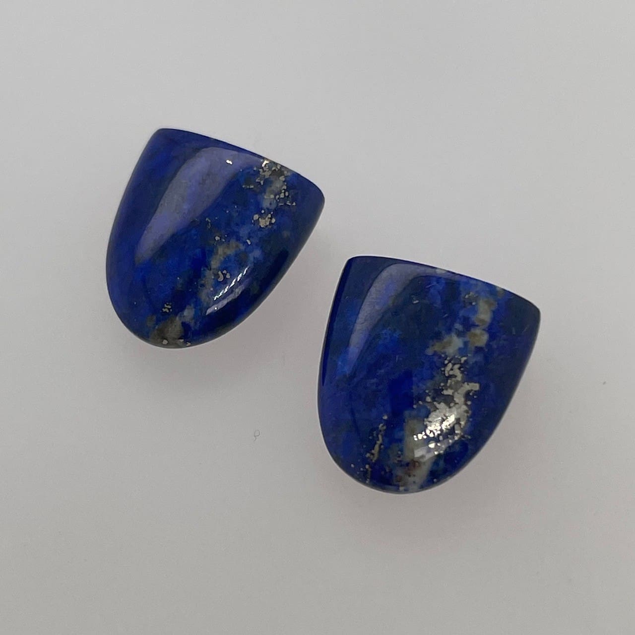 With their polished, domed surfaces and contemporary shield cut, this matched pair offers both historical richness and modern elegance. Perfect for custom earrings or statement pieces that celebrate the timeless allure of lapis.