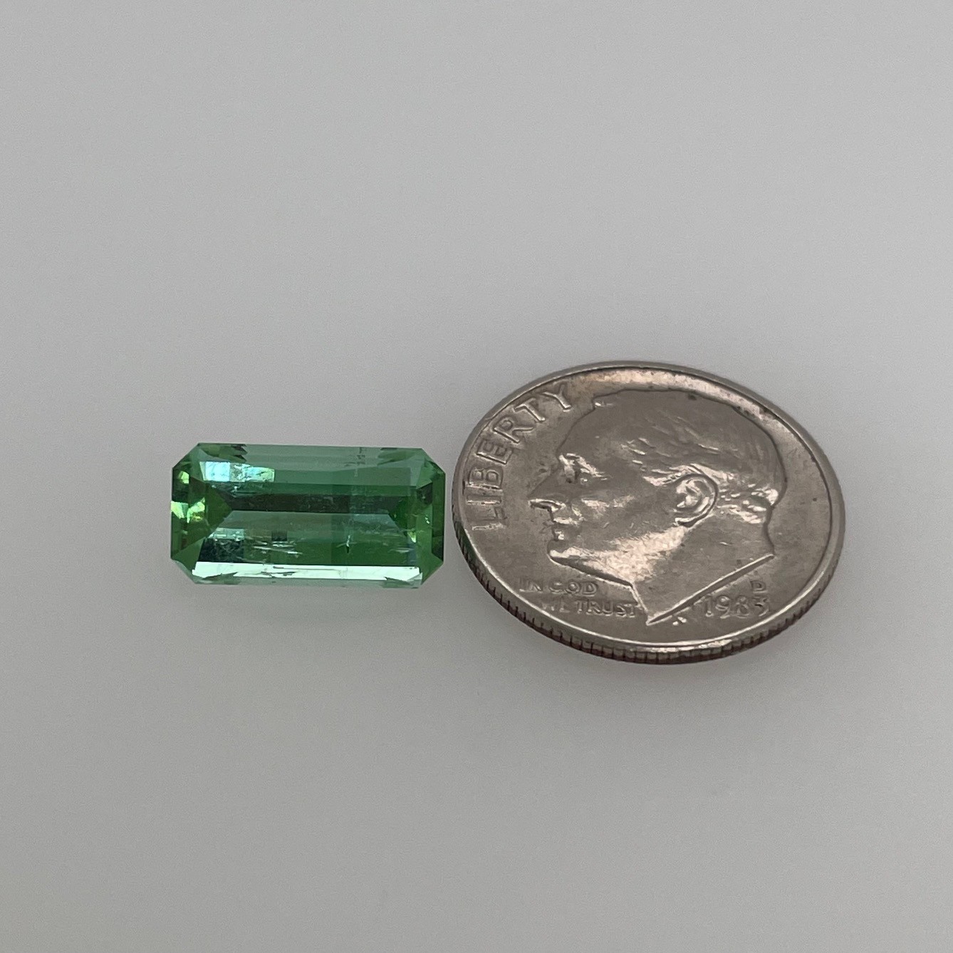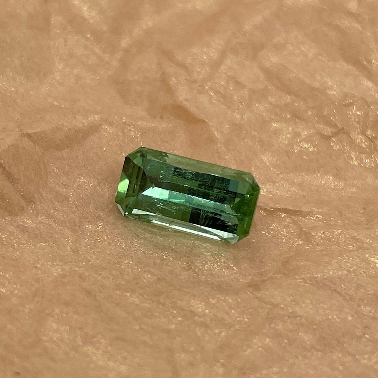 Tourmaline is Maine’s state gemstone and one of its most cherished natural treasures. First discovered in 1820, Maine tourmaline has been admired worldwide for its striking range of colors and remarkable clarity. This elongated gem, with its modern opposed bar cut, beautifully honors that tradition while offering a distinctly contemporary look.